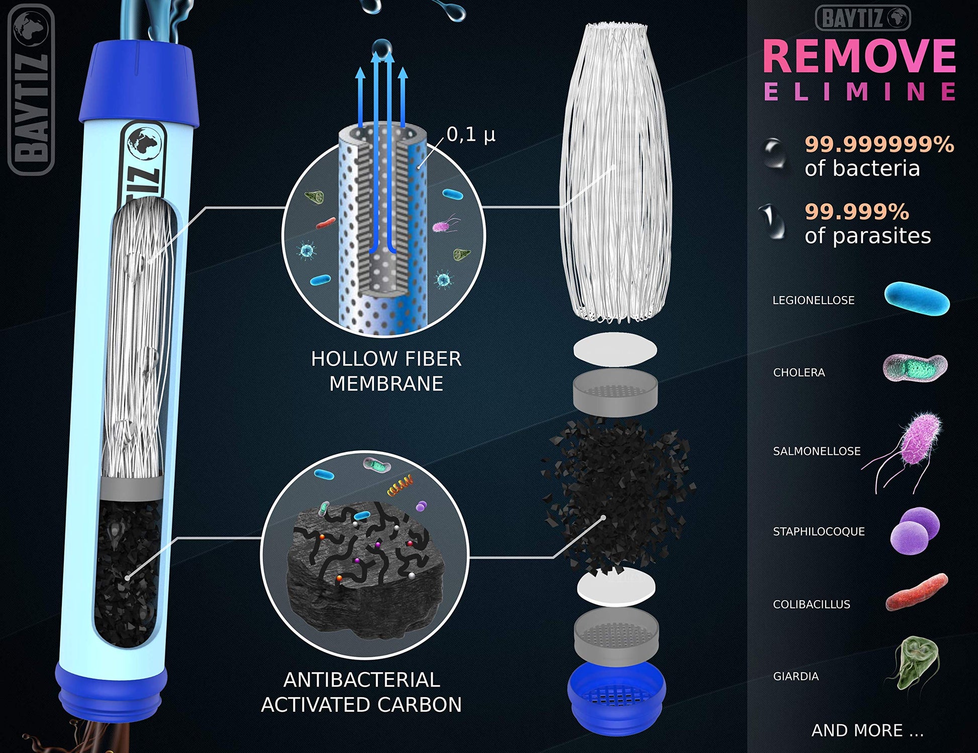 Baytiz ® Botella de Agua con Filtro Purificador sin BPA - Paja de Supervivencia de Carbón Activado Filtros Purificadores Accesorios Pastillas Potabilizadoras Filtrada Potabilizador Deporte Grifo Water